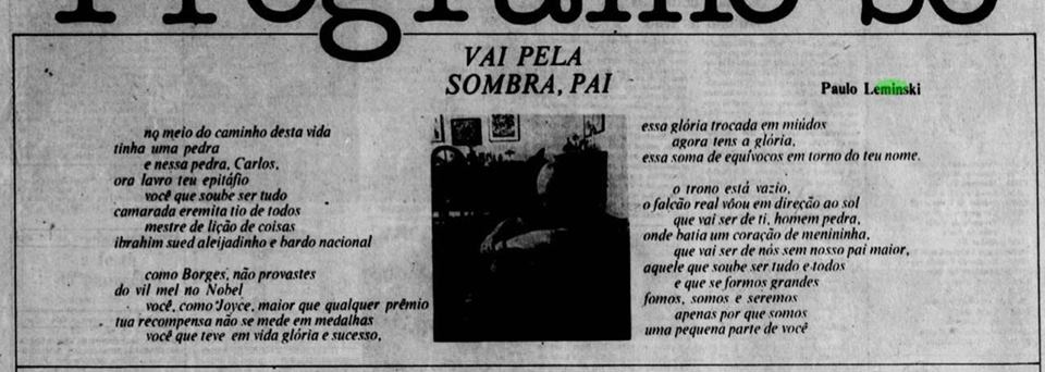 Logo após a morte do Drummond, em 1987, encontramos um Leminski que assim se despede do nosso maior poeta. |
